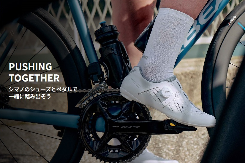 シマノのシューズとペダルとともに、ライドに踏み出してほしいという思いこめて「PUSHING TOGETHER」キャンペーンを実施いたします。