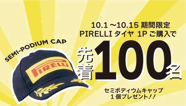 ・プレゼントアイテムは、ピレリ・セミ・ポディウムキャップで、先着100名様限定となります。
