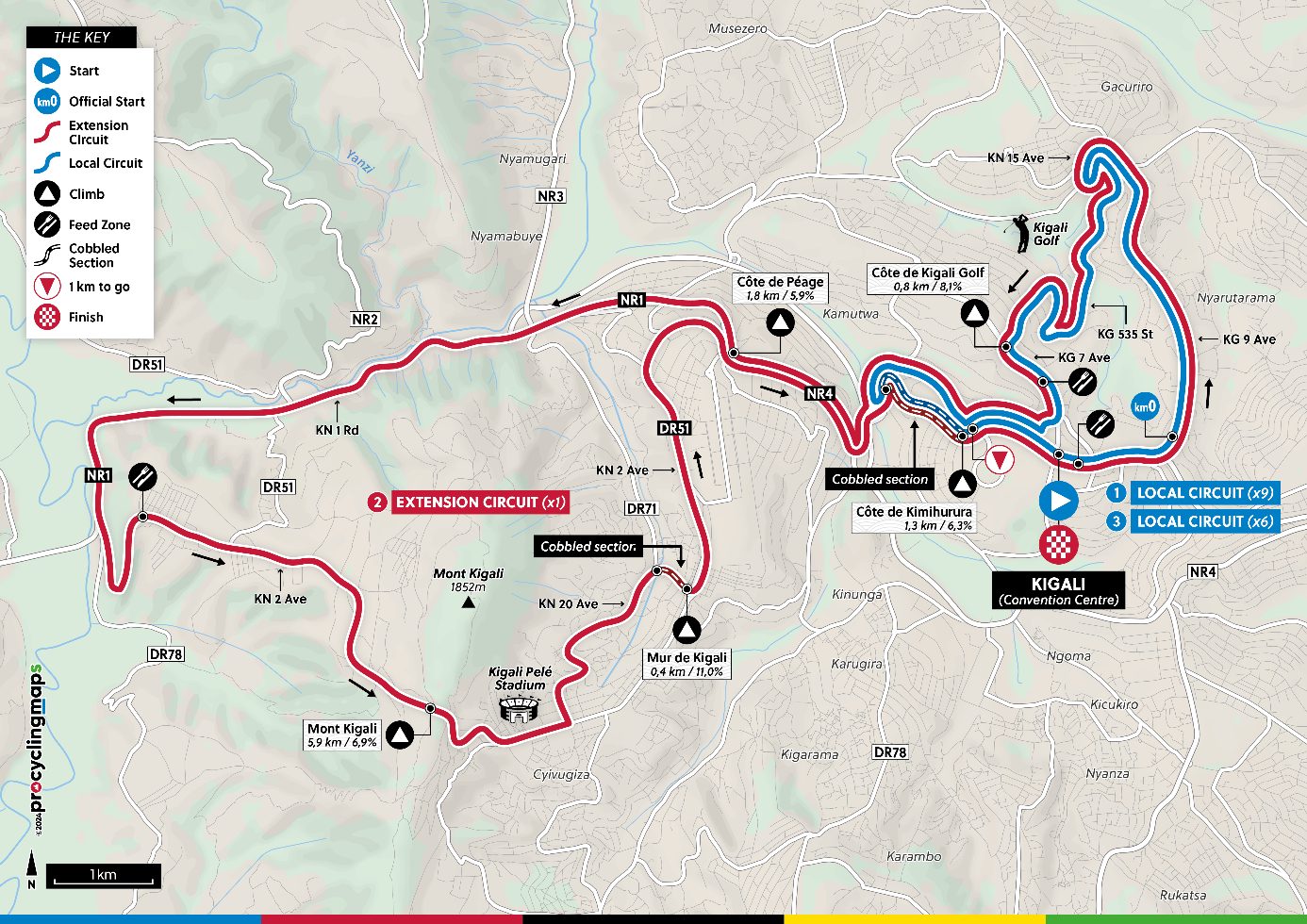 29.1kmコースにはキガリ峠(距離5.9km/平均6.9%)からキガリ・ペレ・スタジアムの横を通り、ミュール・ド・キガリ(距離0.4km/平均11%)を越える。しかし今大会の最高標高地点1,771mであるキガリ峠の頂上でもフィニッシュ地点まで104kmあるため、勝負どころにはならず、ラスト6周から動きが現れるはずだ。