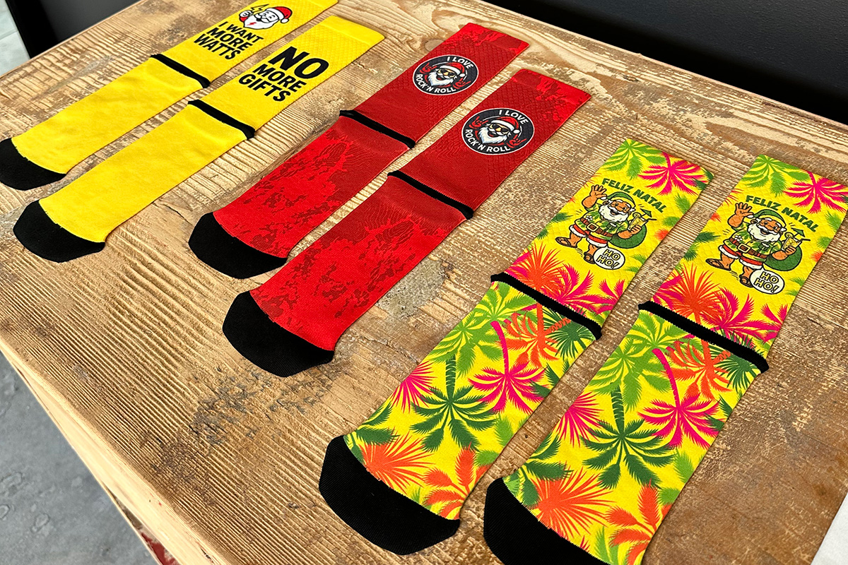 MBウェア Christmas Edition socks ’25(Feliz Natal、手前) (c)ポディウム