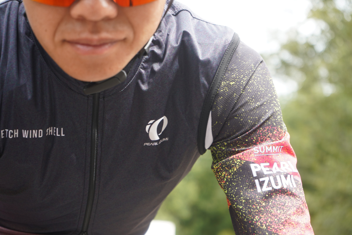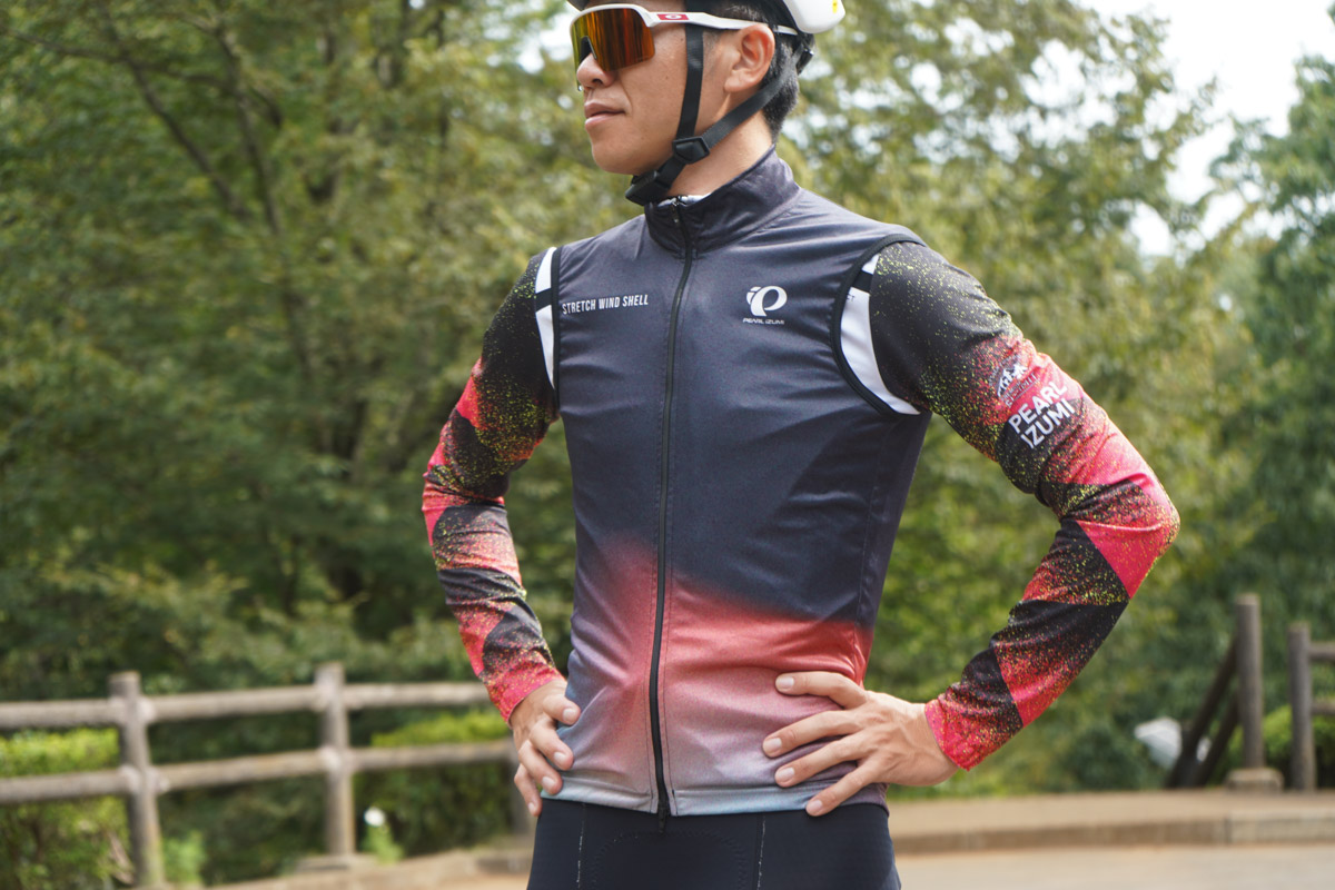 このストレッチウィンドシェルは、数年前から量産品で利用されユーザーから好評を得ていた。パールイズミのオーダーウェアには「ウィンドブレーカーやベスト」はアイテムとしてあったが、この素材ほど伸縮性がなかった。この素材を採用しタイト目のフィット感に仕上げつつ、素材の伸縮性で様々な体型の人にも合うような製品への仕上げた。そして、アクティブなライディングシーンでも快適に過ごしやすさを実現している。