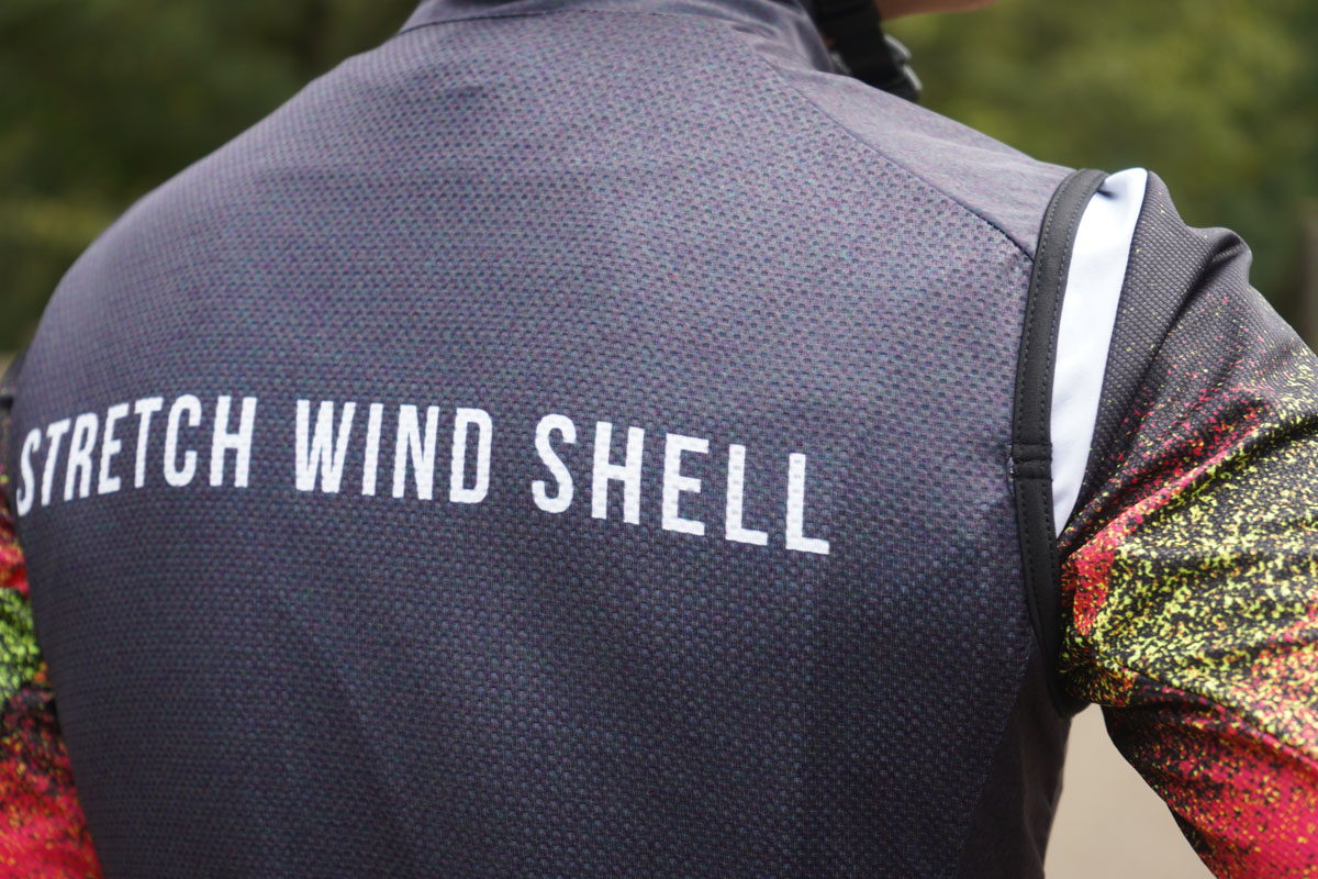 背面には撥水性能も備えたメッシュ生地を配置。汗をかいても蒸れにくい通気性と、突然の降雨でもある程度は身体を守れる性能を備えた。短時間の雨なら凌げる程度の性能は、軽量なウィンドシェルとしては魅力的なアドバンテージだ。裾内側にはシリコン加工を施し、ライディング中のずり上がりを防ぐ。