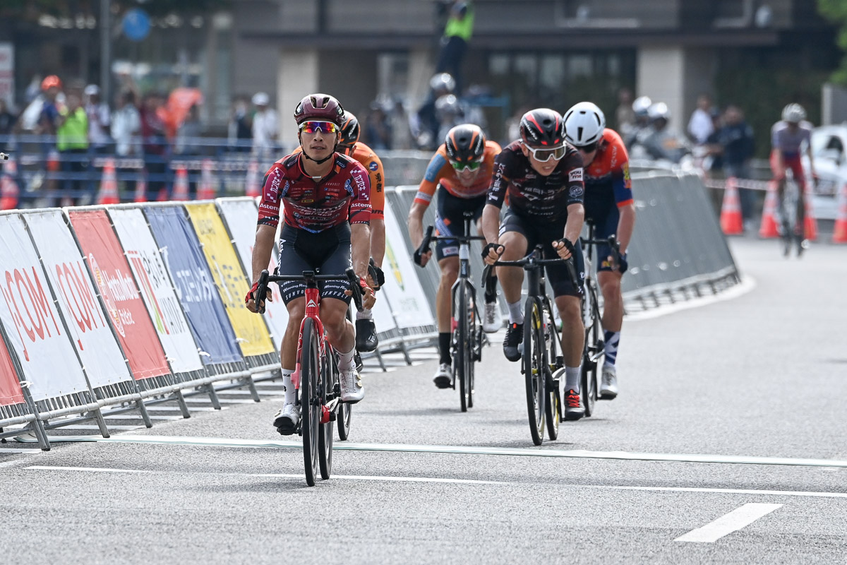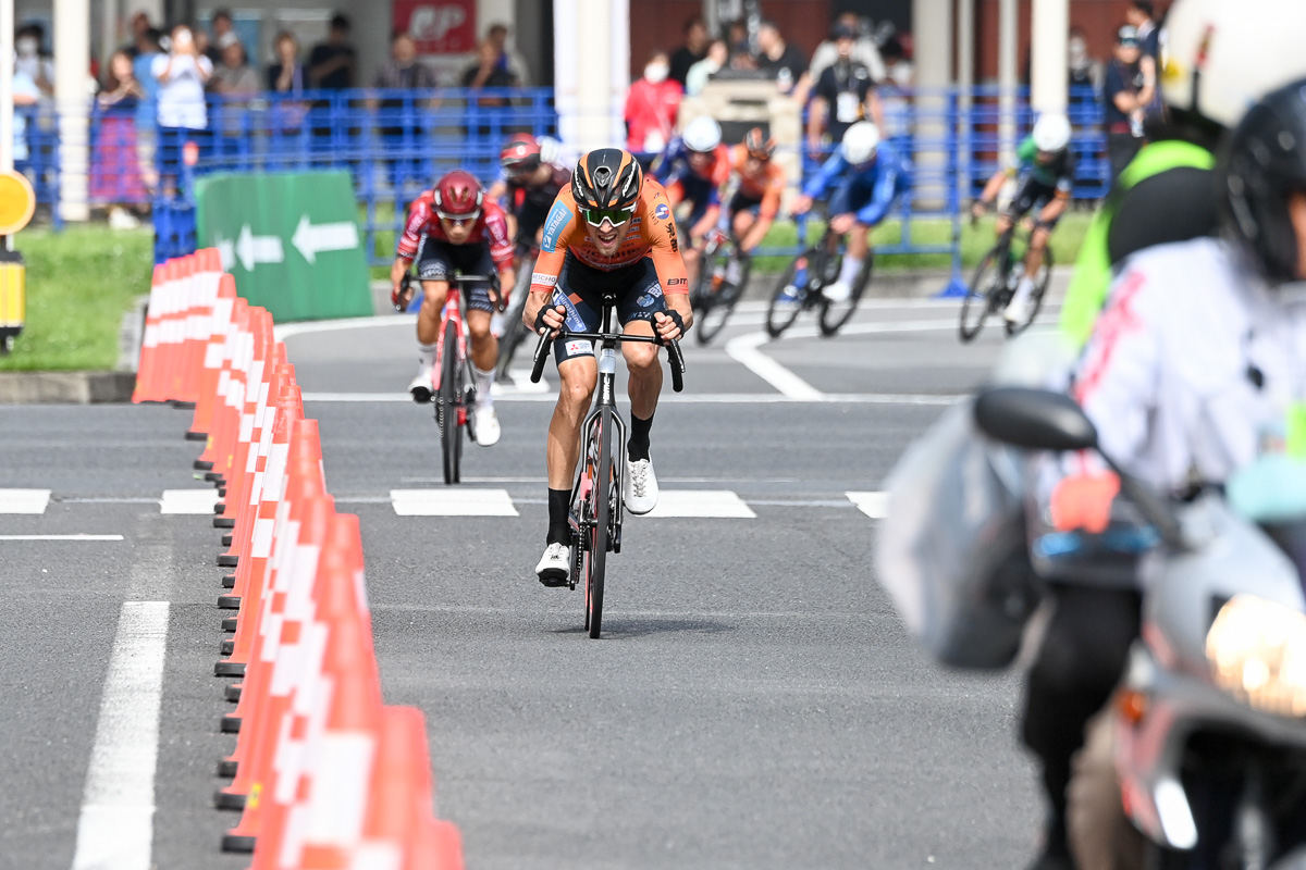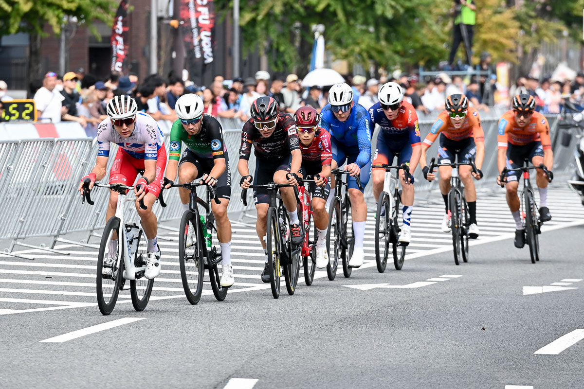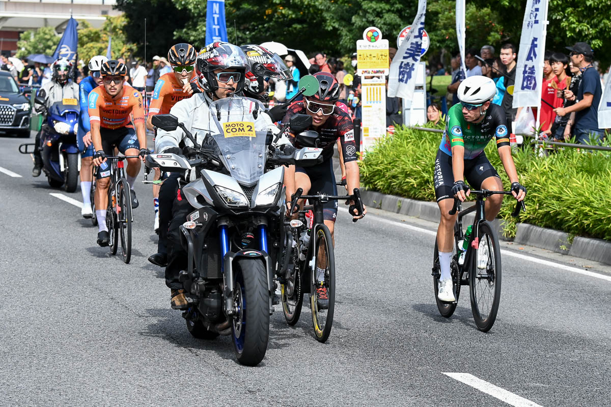 スタート直後からハイペースで集団が長く伸びる展開。数名が抜け出しては集団が追いつくことを繰り返したのち、レース中盤に8名の集団が先行する。メンバーは、ディラン・ホプキンス(ルージャイ・インシュアランス)、マックス・キャンベル(シーキャッシュ ボディラップ)、エウヘニオ・サンチェ(ヴィクトリア・スポーツ・プロサイクリング)、岡篤志(宇都宮ブリッツェン)、本多晴飛(VC福岡)、レイン・タラマエ(キナンレーシングチーム)、ベンジャミン・ダイボール、エリオット・シュルツ(以上ヴィクトワール広島)。