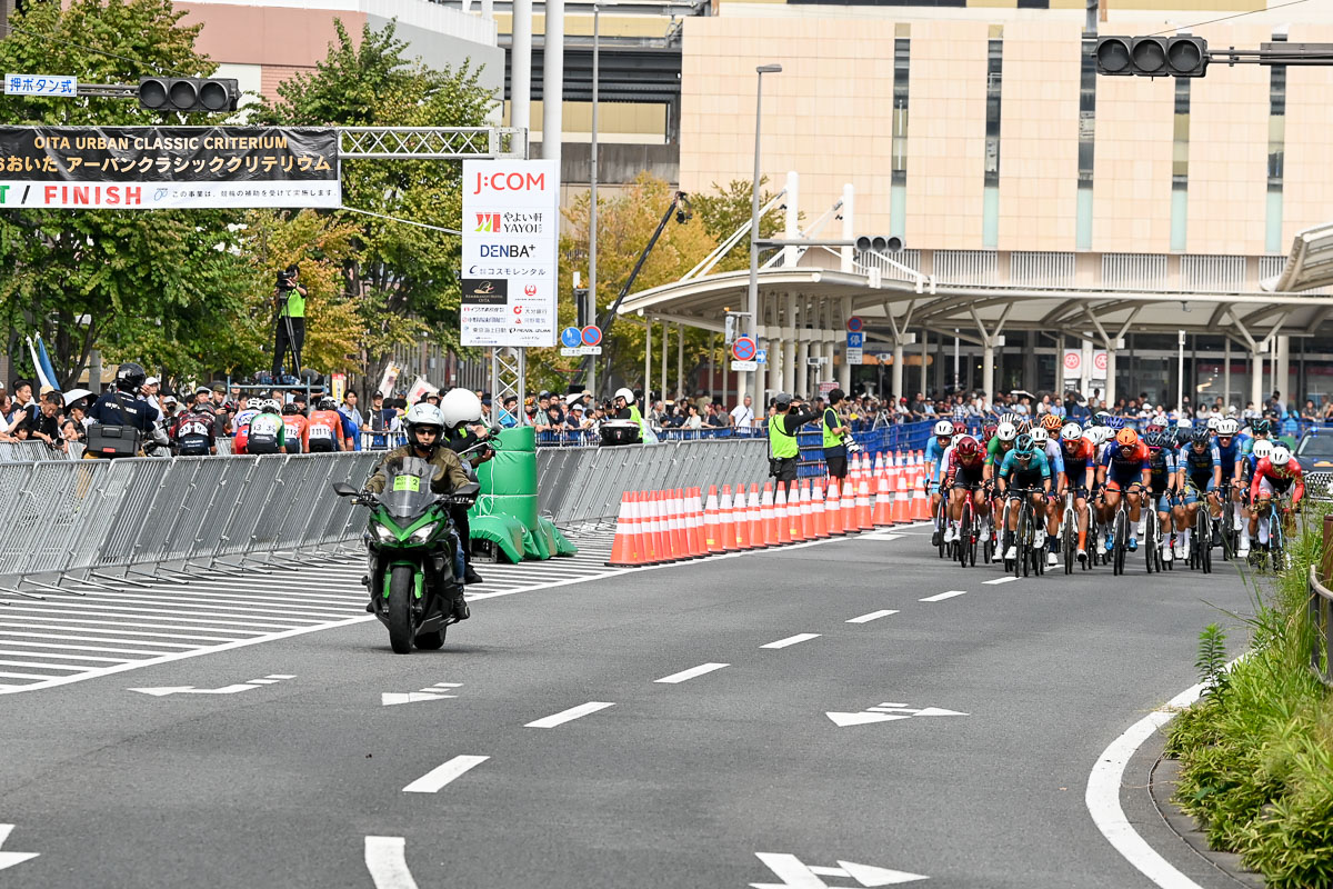 初日はJR大分駅南口前に設定されたコースを使用してのクリテリウム「おおいたアーバンクラシック クリテリウム」が行われた。昨年までは大分駅前の交差点で折り返す1周1kmのコース設定だったが、今年は駅前のロータリーまでをコースに組み込んで1周1.2kmに変更。レース距離は35周42kmとされ、12km延長された。