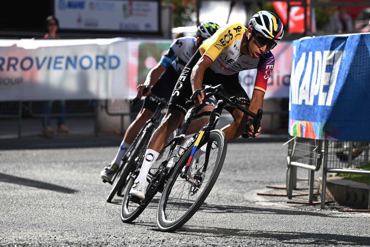 この日は序盤に5名の逃げが決まり、後半戦に入るとその中から唯一生き残ったロレンツォ・ミレージ(イタリア、モビスター)にエガン・ベルナル(コロンビア、イネオス・グレナディアーズ)が追いついて2人逃げに。ラスト50kmを切った登坂区間でミレージを千切った元ツール・ド・フランス覇者が単独逃げに持ち込んだ。
