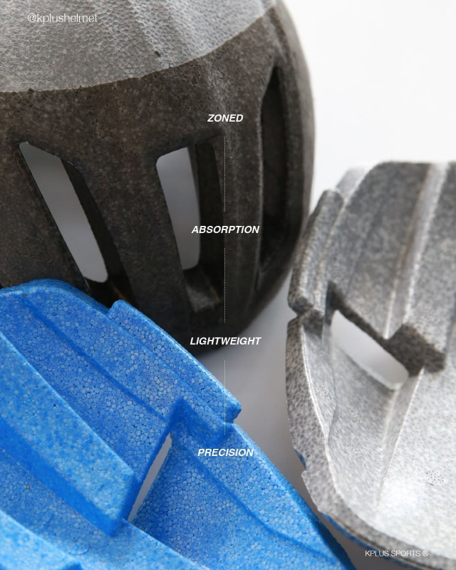 こだわりぬかれた帽体を構成するのは、世界中の高品質サプライヤーから供給されたコアマテリアル。衝撃を受けやすい部位には高密度フォームを、そうでない部分には低密度のものをというように、異なる密度のEPSフォームを適材適所に配置するPolyZone EPSシェルによって、大小さまざまな衝撃を効果的に吸収、分散する。