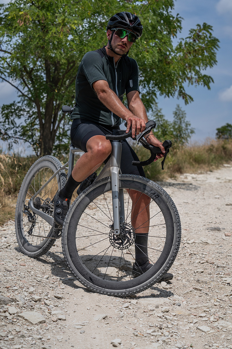 48mmという数値は、空気抵抗の軽減、重量、安定性という3つの要素のバランスを最適化したもの。特にワイドタイヤを装着した際のヨー角全域での安定した空力性能が重視されている。グラベルレースのような予測不可能な環境下でも、ハンドルを切る時や急加減速時の安定性を高めるという設計思想が反映されている。