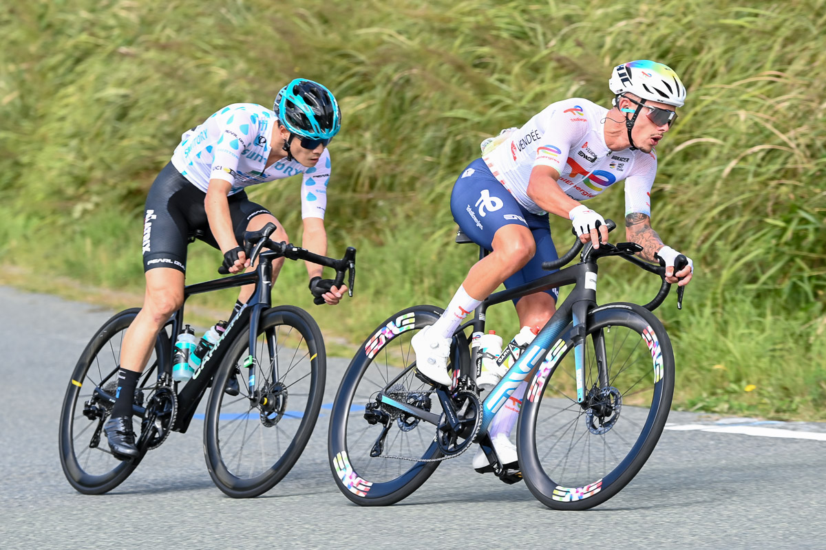周回1周目で先行したトマ・ボネ(トタルエネルジー)と山岳賞ジャージの織田聖(マトリックスパワータグ) photo:Satoru Kato