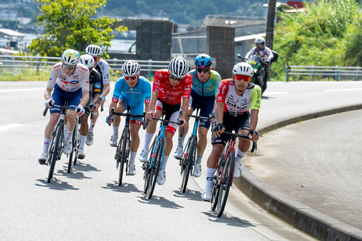 その後今村駿介(アンティマルシェ・ワンティ)、アレッサンドロ・ファンチェル(チーム右京)、ニコラス・ヴィノクロフ(XDS・アスタナチーム)、マーク・ドノヴァン(Q36.5プロサイクリングチーム)、入部らを含む7名が先行。その中から、65km過ぎに設定された2級山岳に向けてヴィノクロフ、ファンチェル、ドノヴァンの3名が先行する。しかし2級山岳後の下りで吸収され、リーダージャージを着るキリロ・ツァレンコ擁するソリューションテック・ヴィーニファンティーニがコントロールして佐伯市内の周回コースに入る。