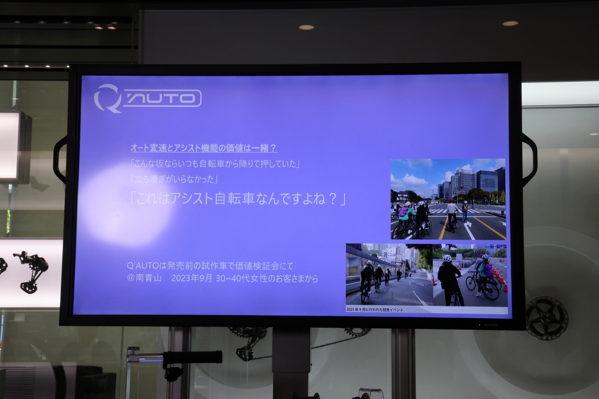 自転車においてもオートマの時代が来るというのは、シマノがずっと追い求めてきた理想でもあるんです。実は50年以上前からオート変速の開発を手掛けてきて、Q'AUTOは一つの到達点でもある。競技をするわけではない、大多数の自転車ユーザーがより心地よく自転車に乗れるようになってもらいたいというのが、シマノの思想なんですね。