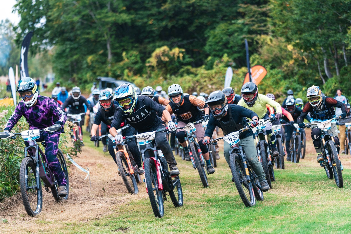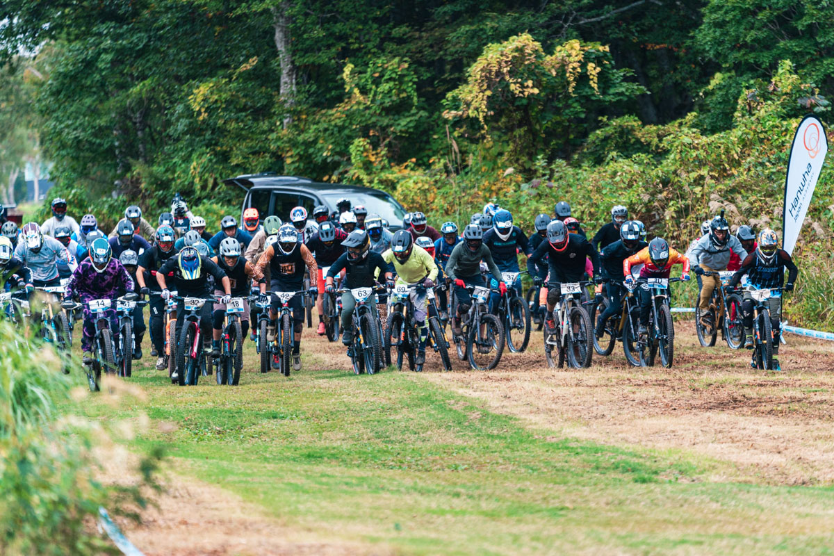 この日はアドベンチャーダウンヒルの決勝も開催された。約80人のライダーが、標高差800m・距離約5kmのゲレンデを一気に駆け下る国内唯一の一斉ダウンヒルレースだ。