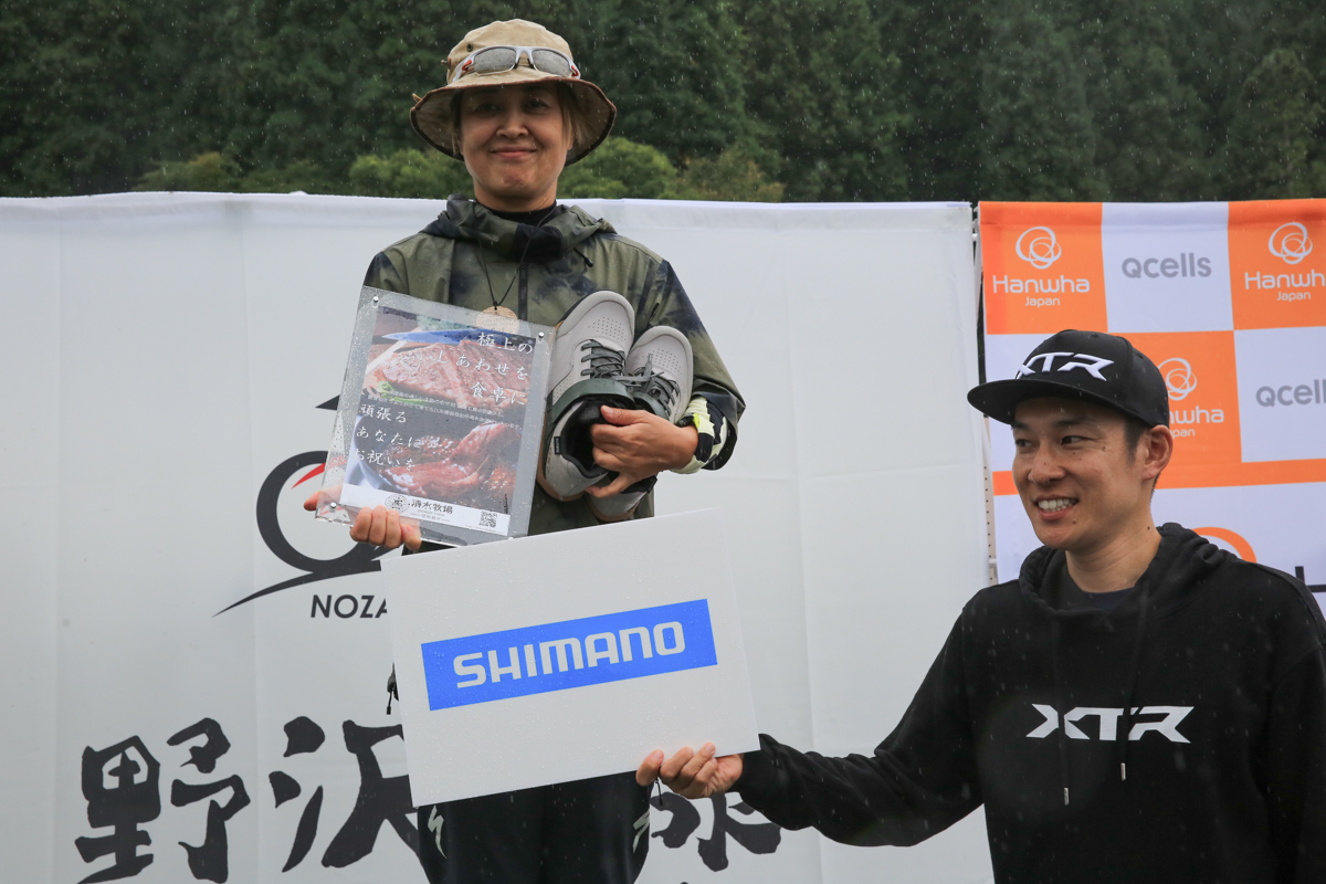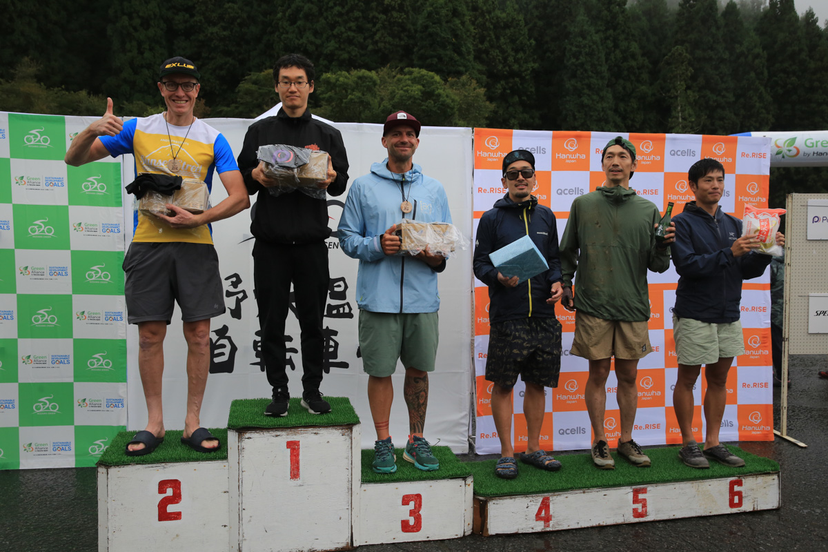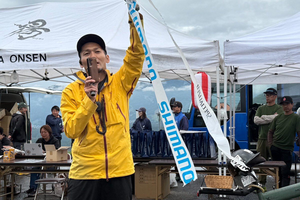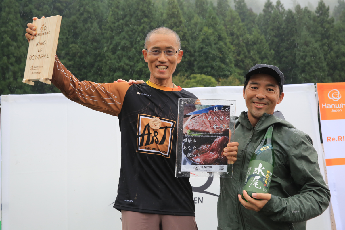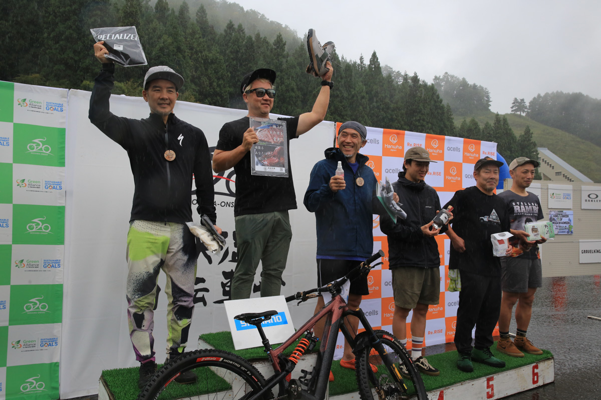 14時すぎにはダンヒル決勝レースも終わり、グラベルの部と合わせた表彰式へと入っていく。ダウンヒル王者に輝いたのは、キングオブ・ダウンヒルが楠紳一郎さん(AST FOREST)、クイーンが菊池美帆(545/TAKE.D)。そしてグラベルは2つのタイム計測セグメントの上位者が表彰され、協賛社や地元からの豪華賞品&特産品などを手にした。