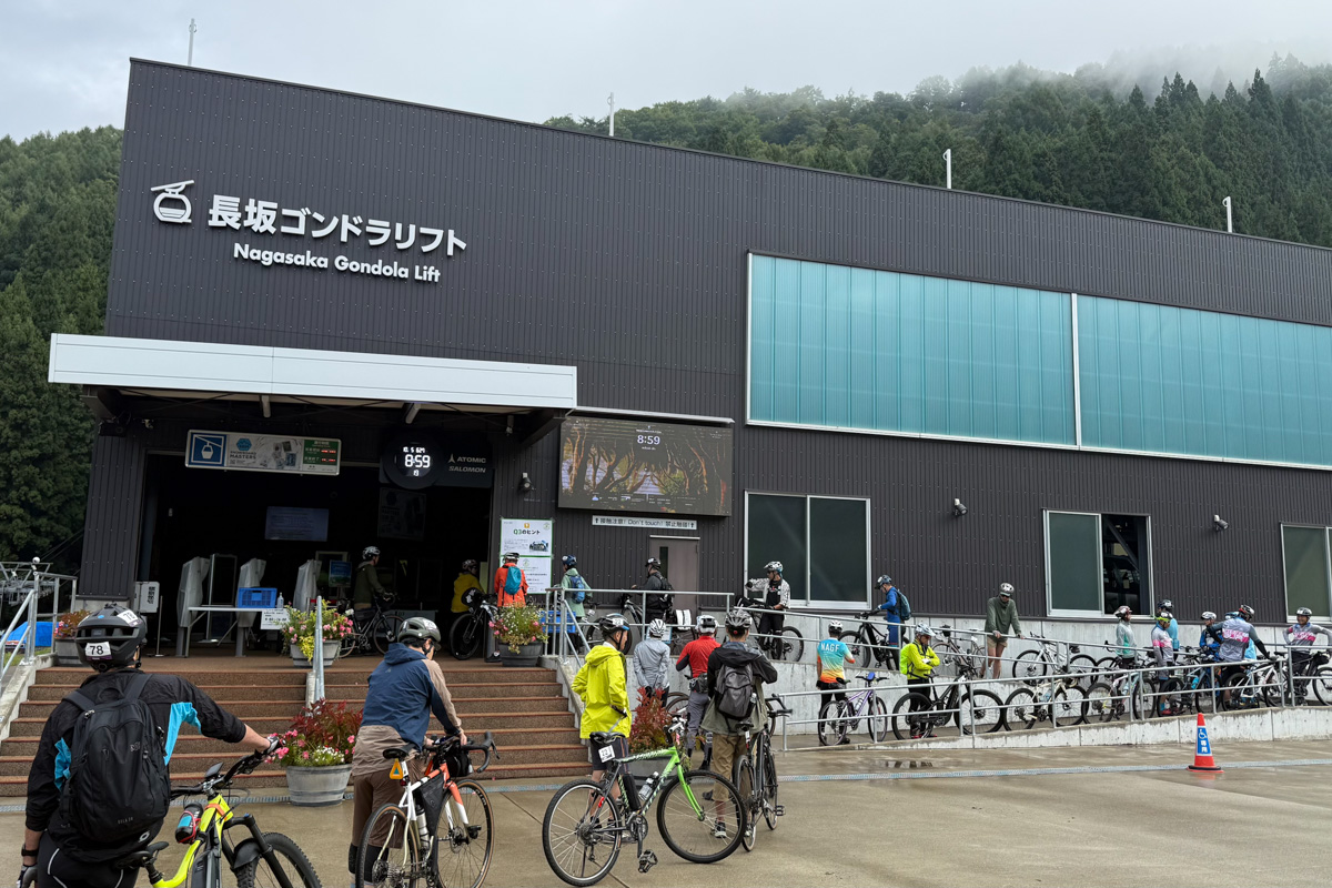 雨模様だというのに半袖ウェアの参加者も多く、「山頂はゼッタイ寒いぞ...」と心配になりつつゴンドラに乗り込むと、幸いなことに雨雲が引き、晴れ間が広がってきたのでホッと一息。