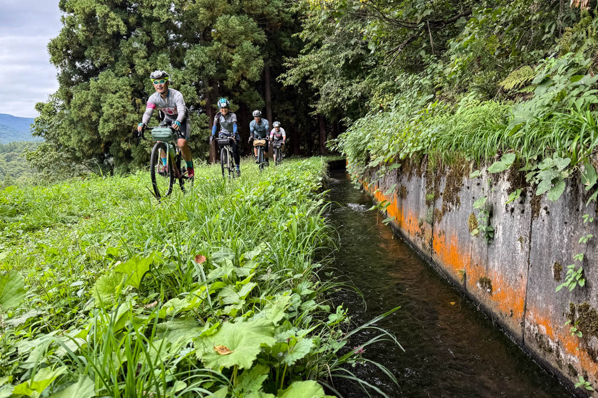 里と山の際(きわ)に引かれた水路に沿って走れる区間があったりと、人里につけられた普段は立ち入れない未舗装路を走ることができるのが楽しい。