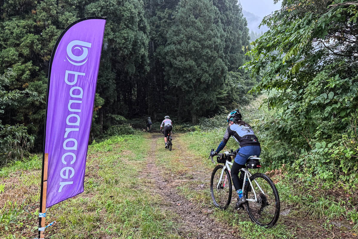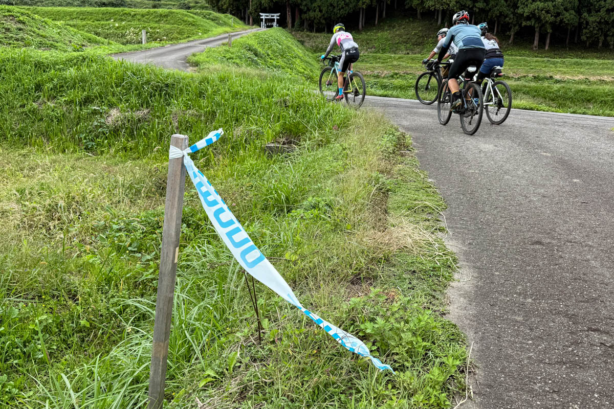 グラベルイベントの定石通り、コース上には立哨員が居るわけでなく、参加者自身がサイクルコンピュータにgpxデータをインストールしてセルフナヴィゲーションしながら走ることになる。ただしルート上の分岐点や曲がるポイントにはコーステープの切れ端が結ばれる「最低限の目印」が付けられるという。