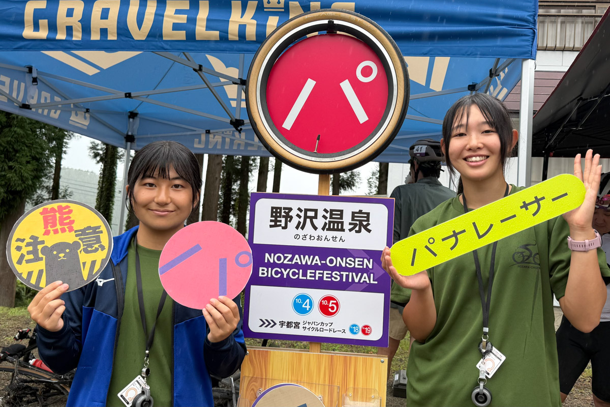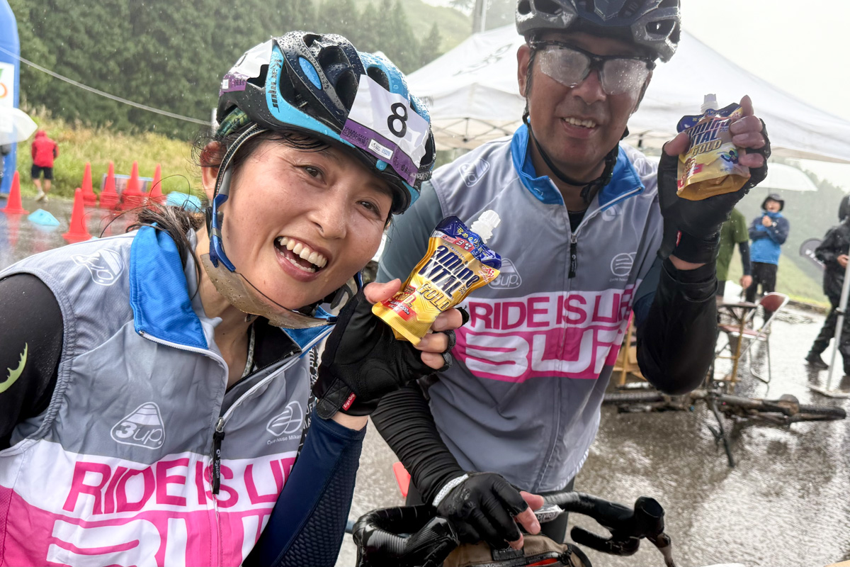 2日間でヒルクライム、ダウンヒル、グラベルの3種目が開催。2種目に出場した女性にはクイーン・オブ・野沢温泉賞として「冬も来てね」とスキー場のシーズン券が贈呈されるなど、粋な計らいも。そしてこの夜も屋台村が開催されるとあって、後泊できる参加者が羨ましい!