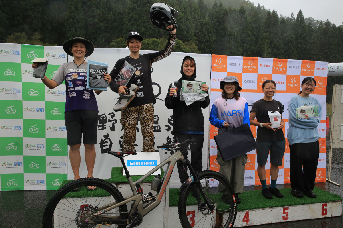 ダウンヒル女子の部の表彰 photo:Makoto AYANO