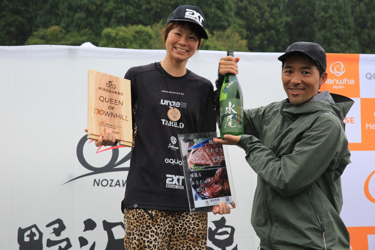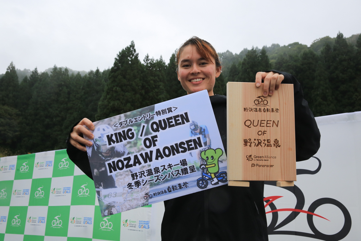 ヒルクライムとダウンヒル両方に頑張った女性にクイーン・オブ・野沢温泉賞が贈呈された photo:Makoto AYANO
