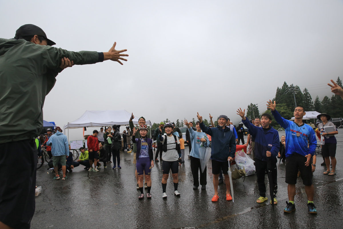 ゲレンデを登りきった終点の頂上から舗装路の急坂を下れば、長坂ゴンドラ駐車場にあるメイン会場へとフィニッシュする。本降りの雨になったことで遅い人にとってはかなりの試練だったに違いない。メイン会場に続々とフィニッシュしてくる人たちが喜びを爆発させていたのが過酷だったことの証だ。