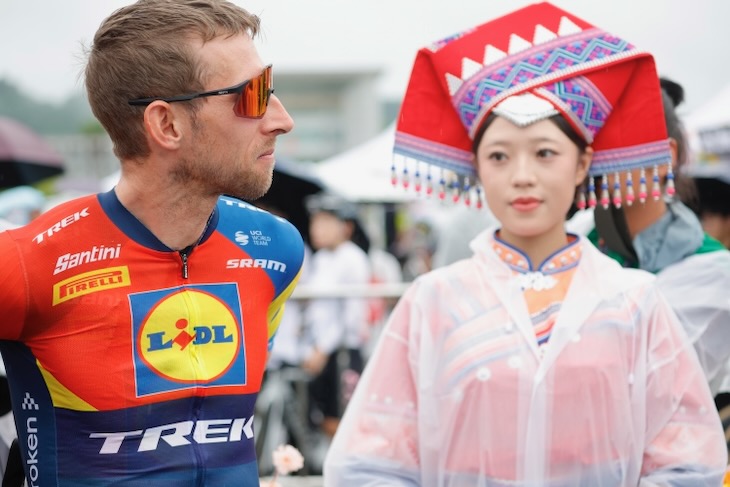 2025年最後のワールドツアーであるツアー・オブ・グワンシーは2日目を迎えた。この日のコースは中国の広西チワン族自治区、崇左(チョンズオ)から靖西(ジンシー)に向かう177.4km。コースは前日同様の平坦基調。残り約35kmから2級山岳が登場するものの、平均勾配は4%台でスプリンターを退けるほどではない。