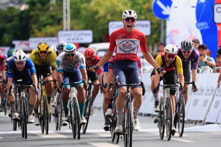 2日連続でスプリント決着となったツアー・オブ・グワンシー第2ステージ。先行したビットネルをポール・マニエ(フランス、スーダル・クイックステップ)が悠々と追い抜き、2連勝を決めた。