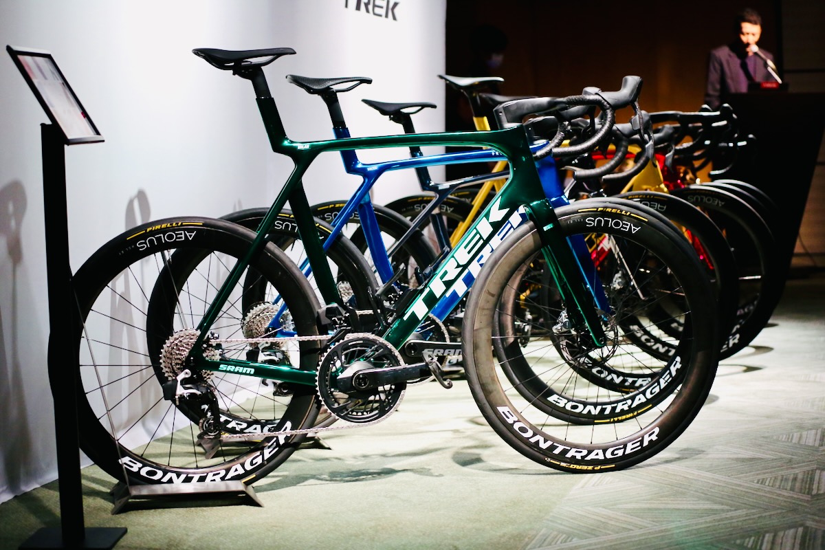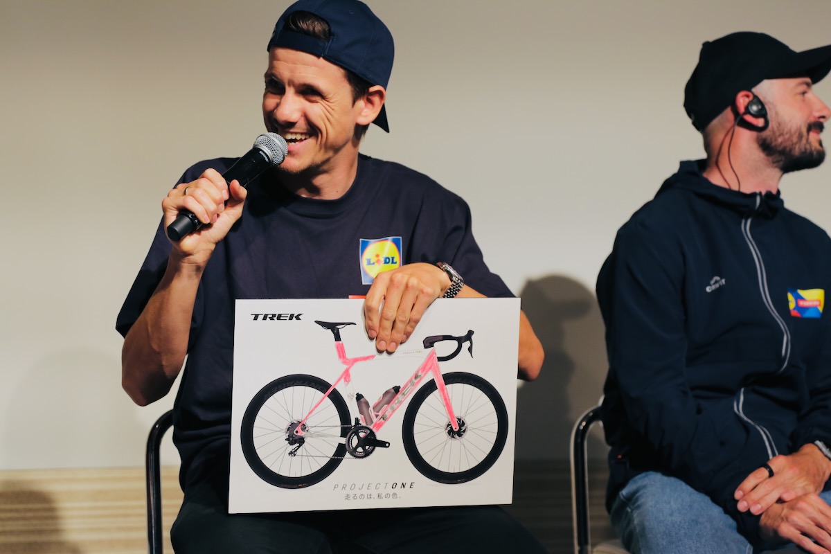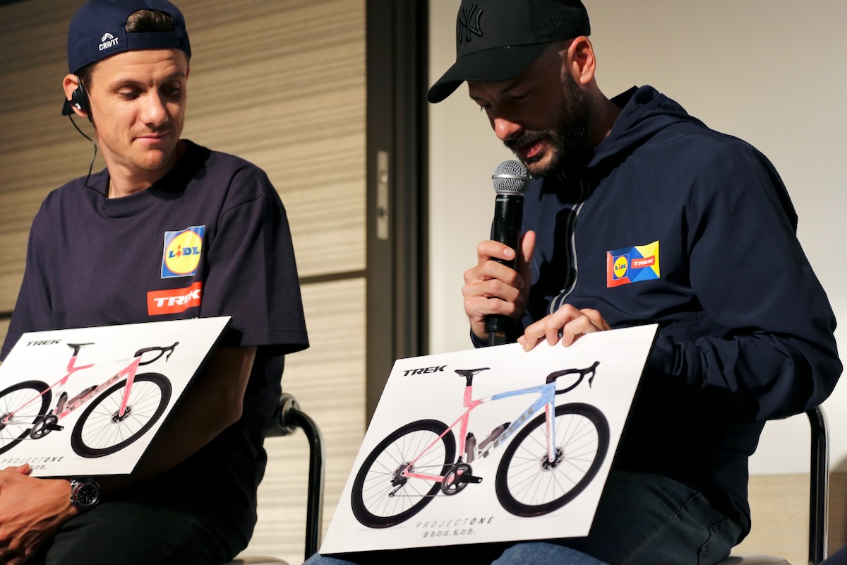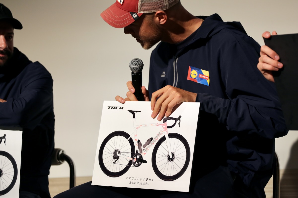 そのキックオフとなった10月16日には、ジャパンカップを控えるリドル・トレックのメンバーが来場。このジャパンカップのために特別に用意された「Chroma」カラーにペイントされたMadone SLR との初対面を果たした。