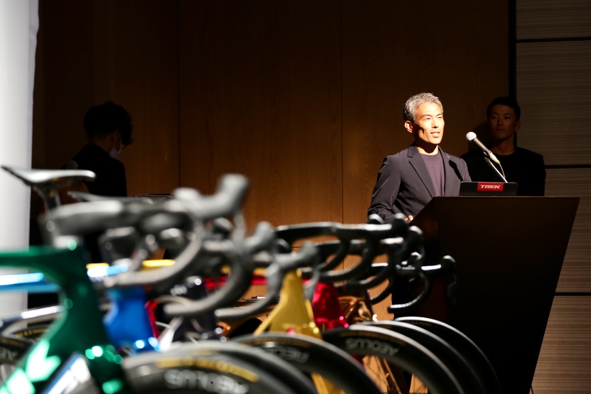 トレック・ジャパン代表取締役社長を務める坂下純さんの挨拶でウェルカムイベントがスタート photo:So Isobe