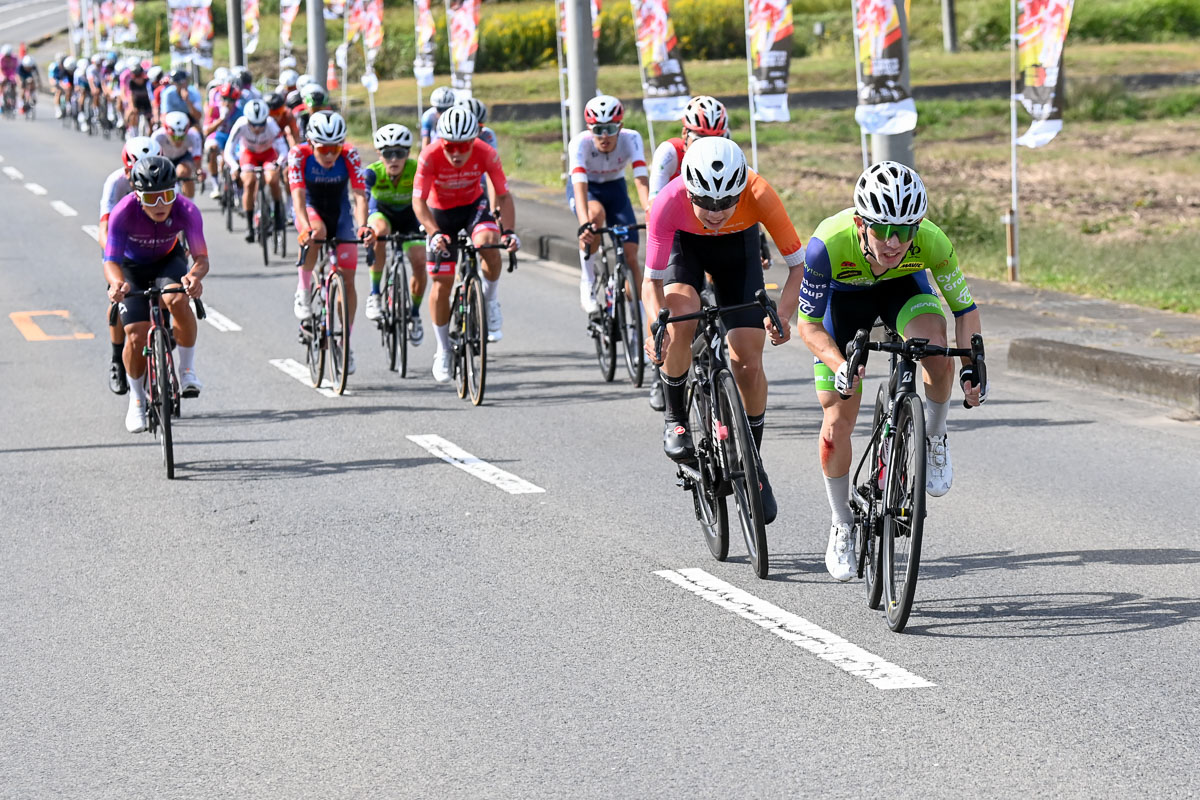 7周回72.1kmのレースは、秋晴れの青空の下スタート。序盤はアタック合戦を繰り返しながらも、ゆっくりとしたペースで進行していく。