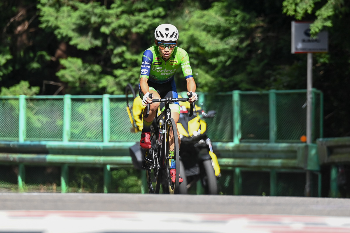 4周目、玉城翔太(チームサイクラーズスネル)が単独先行で頂上を通過 photo:Satoru Kato