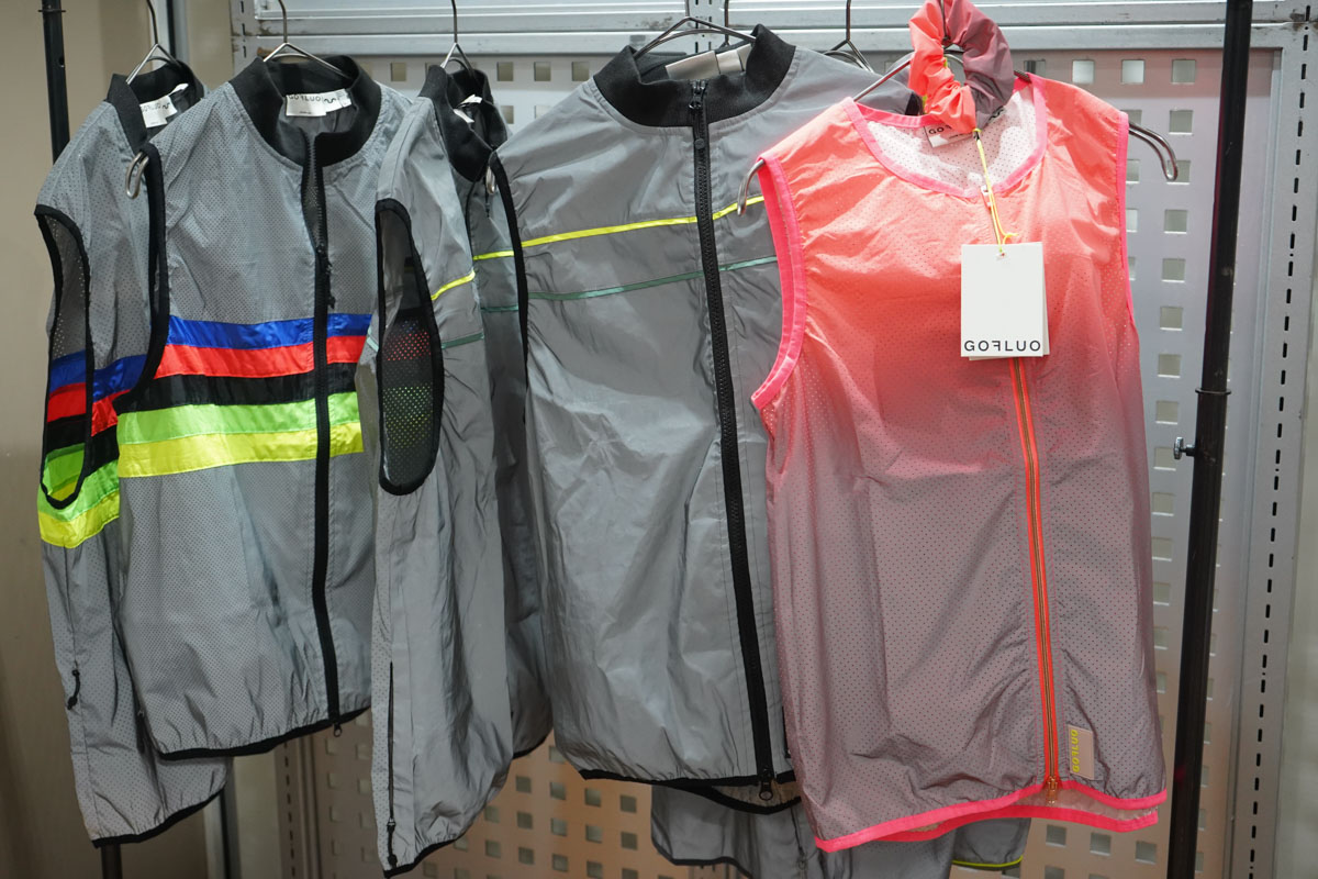 反射ベストブランドのゴーフローブランドからは、「パフォーマンスフィット」が登場した。しなやかな生地を使用してフィット感を高めた製品で、サイクリング中のバタつきなども抑えられる機能性や、スタイリッシュさも加わっている。また、シュシュや犬用ベストも取り扱いが始まっているのことにも注目したい。