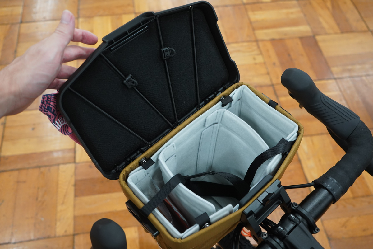 ルートワークスのHandlebar Bagの新バージョンが登場した。以前のモデルより二回りほど大きくなり、収納物を選ばない仕様となっている。通常モデルは一眼レフカメラがちょうどフィットする大きさだったが、ビッグサイズモデルとなることで他のものも収納できる余裕が生まれている。タイヤとのクリアランス確保のため、20mm高く設置できるハイマウントも選べる。