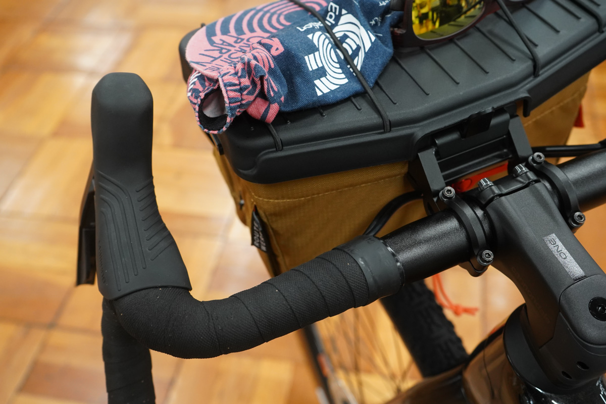 またこのバッグの特徴でもあるハードなフラップに備えられているポートが3つに増設。これによってサイコン、スマホ、ライトを同時にマウントすることが可能となった。もちろん内部ストレージも広くなったおかげで、収納できるものの可能性が広がっているため、バックポケットのないTシャツなどでサイクリングを楽しみたいという方にはぴったりなプロダクトだ。