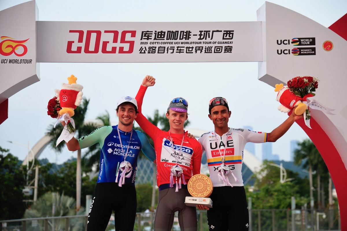 日本で宇都宮ジャパンカップロードレースが行われた10月19日、中国・広西チワン族自治区でツアー・オブ・グワンシー(UCIワールドツアー)の最終第6ステージが行われた。舞台となったのは2級山岳を含むコースを5周回する全長134.3km。2級山岳は平均勾配11.5%と厳しいが、登坂距離は1.3kmと短く、スプリンターにも十分勝機があると見られた。