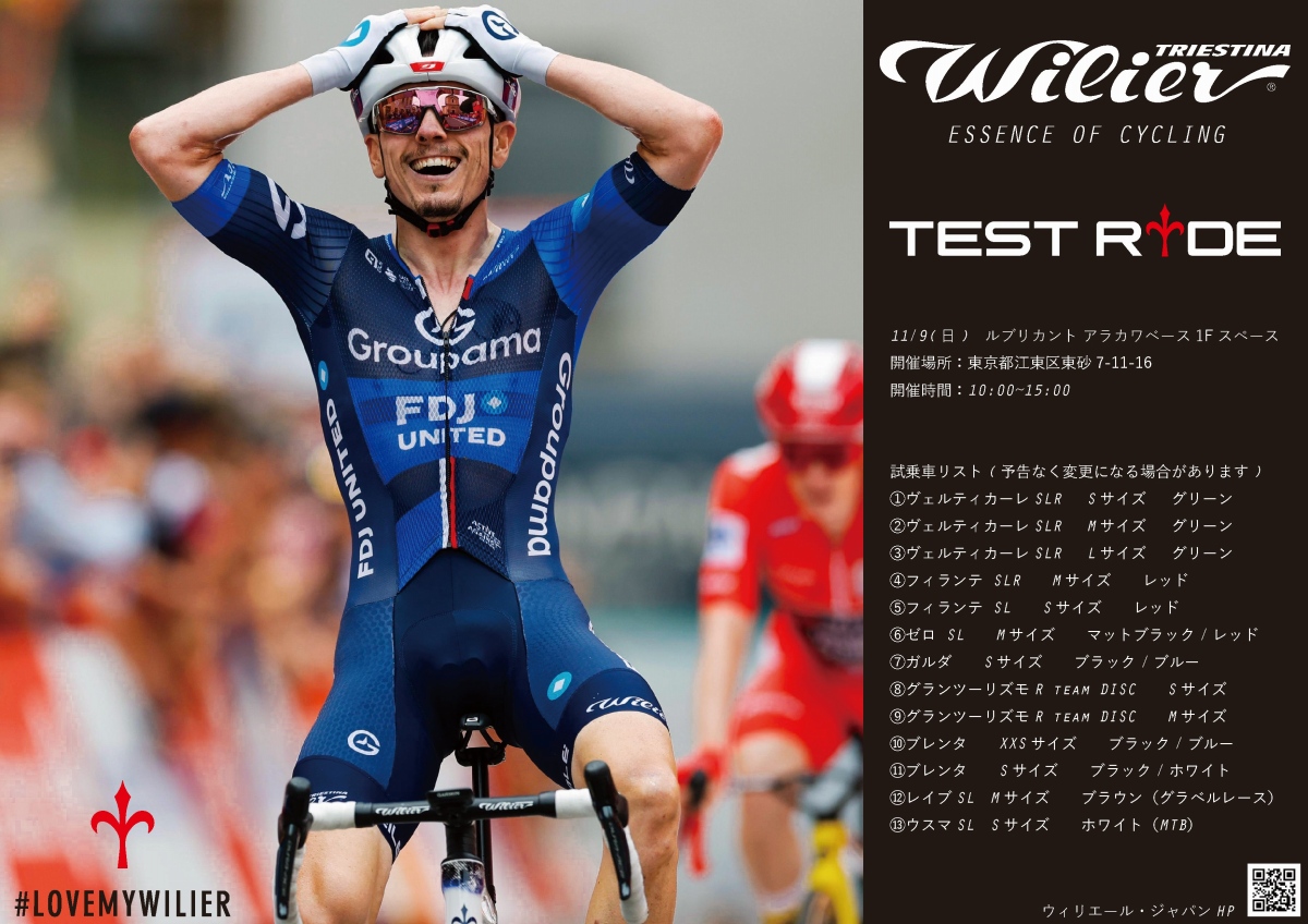 ウィリエールが11月9日(日)に東京都江東区の「ルブリカント アラカワベース 1Fスペース」で試乗会を開催する。Verticale SLRやFILANTE SLRなどの最新ラインアップを試乗できる機会だ。以下、プレスリリースより紹介しよう。