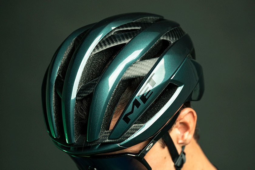 その結果として前作よりも大きな開口部と、風がシェル内で留まることなく排出されるエアチャネルを実現し、通気性は前モデルより16%向上した。METは時速12kmのヒルクライムでも、時速90kmのダウンヒルでも涼しさを感じられると胸を張る。
