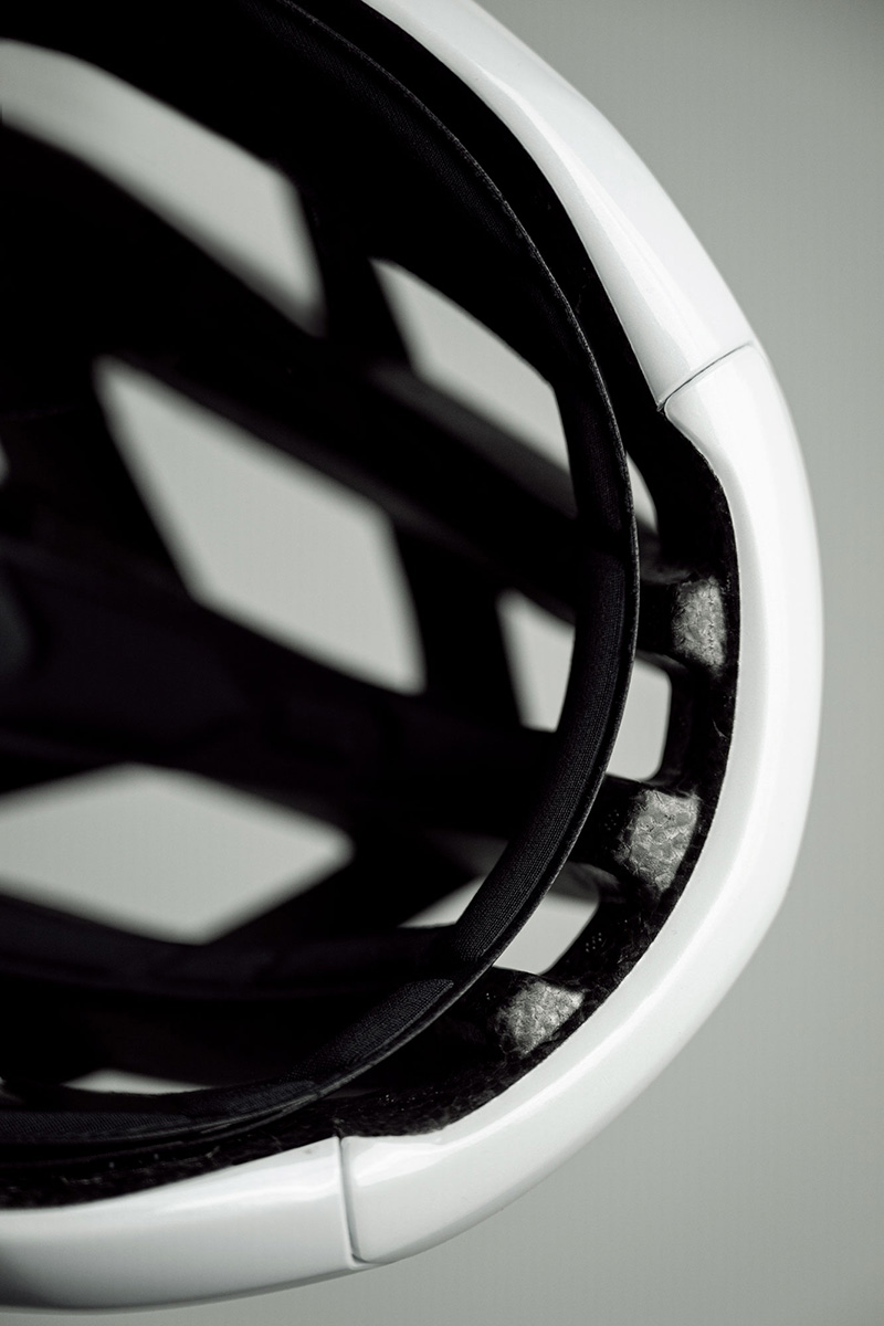 新型TRENTAはモデル名が示す3KカーボンによるエアフレームとEPSフォーム、アウターシェルの構造を維持しつつ、各部をイチから再設計することで、通気性と安全性向上を実現。その進化に貢献したのが自社風洞実験施設のTUBEだ。この施設では空気抵抗と温度変化の解析を行うことで、トレードオフの関係にあるエアロとクーリング性能のバランスを高い次元で整えた。