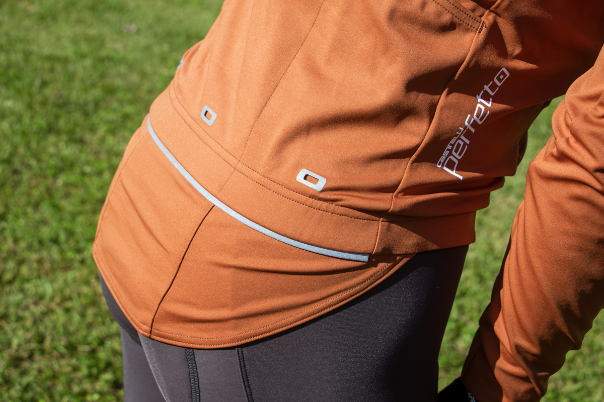 カステリのジャケットに共通する魅力の一つが腰部分のフラップだ。今作ではフラップのサイズが大きくなっており腰を完全にカバー。雨天のライドでもビブタイツへの影響を小さくしている。シクロワイアードでは雨天でのテストも予定中。ウェットコンディションでのインプレッションは後日掲載予定だ。