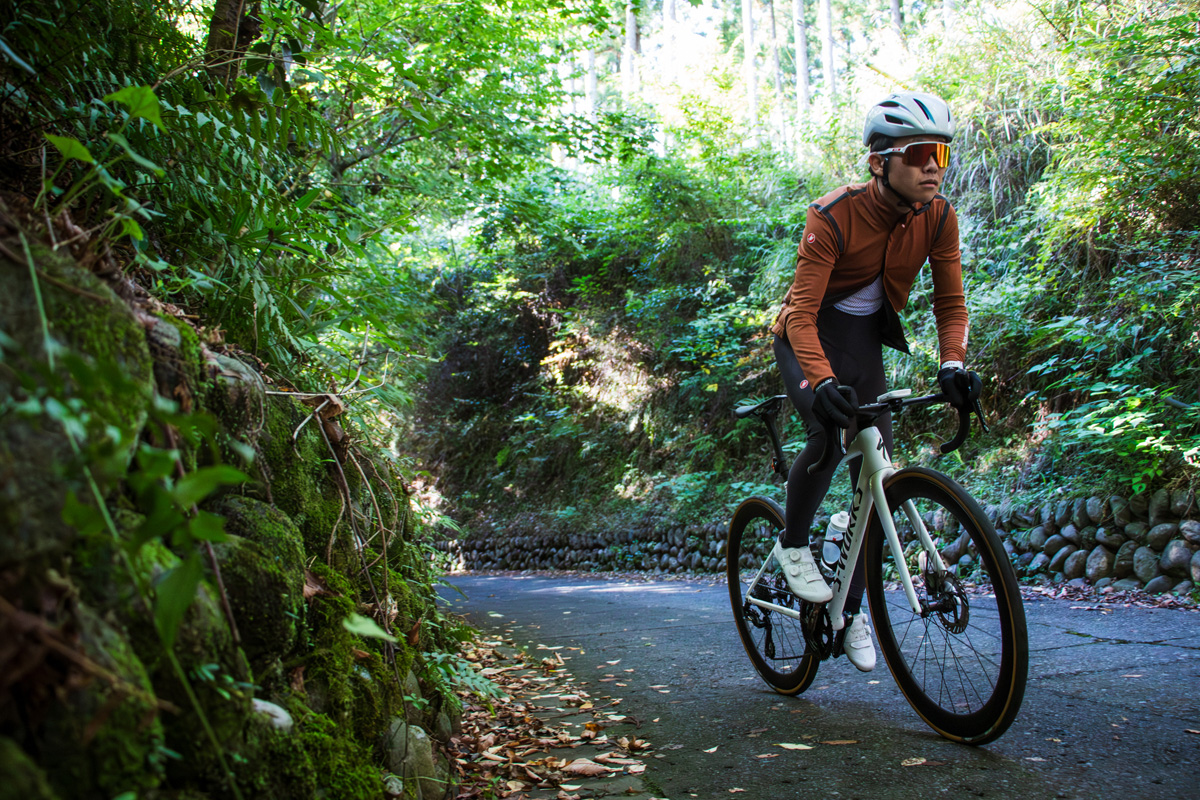さて、ここからはPerfetto RoS 3 Jacketのファーストインプレッションをお届けしよう。注目の新作を着用したのは身長175cm、体重60kgの高木三千成(シクロワイアード編集部)。普段からカステリのSサイズを着用しており、今作もSサイズで適切なフィットだ。