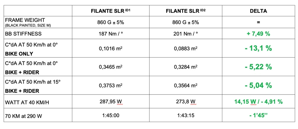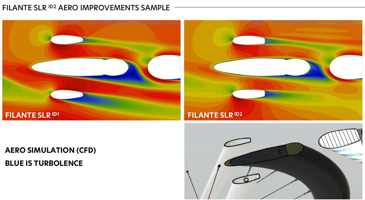 ウィリエールはエアロダイナミクスの検証をモータースポーツ関連企業が集うイギリス・シルバーストーンの風洞で実施。自転車単体での新旧比較では空気抵抗が13.6%低減しており、CFDで推定されていた12%を上回る結果を得た。ライダーを含めたシステム全体でも実走行環境で良好な結果となり、時速40kmの走行時では14.15ワットものパワーセーブを実現している(エアロキット装備時)。