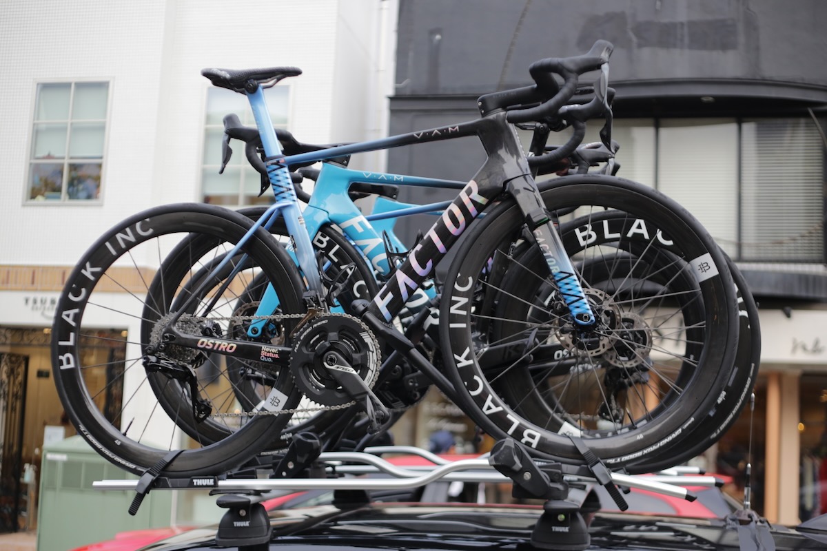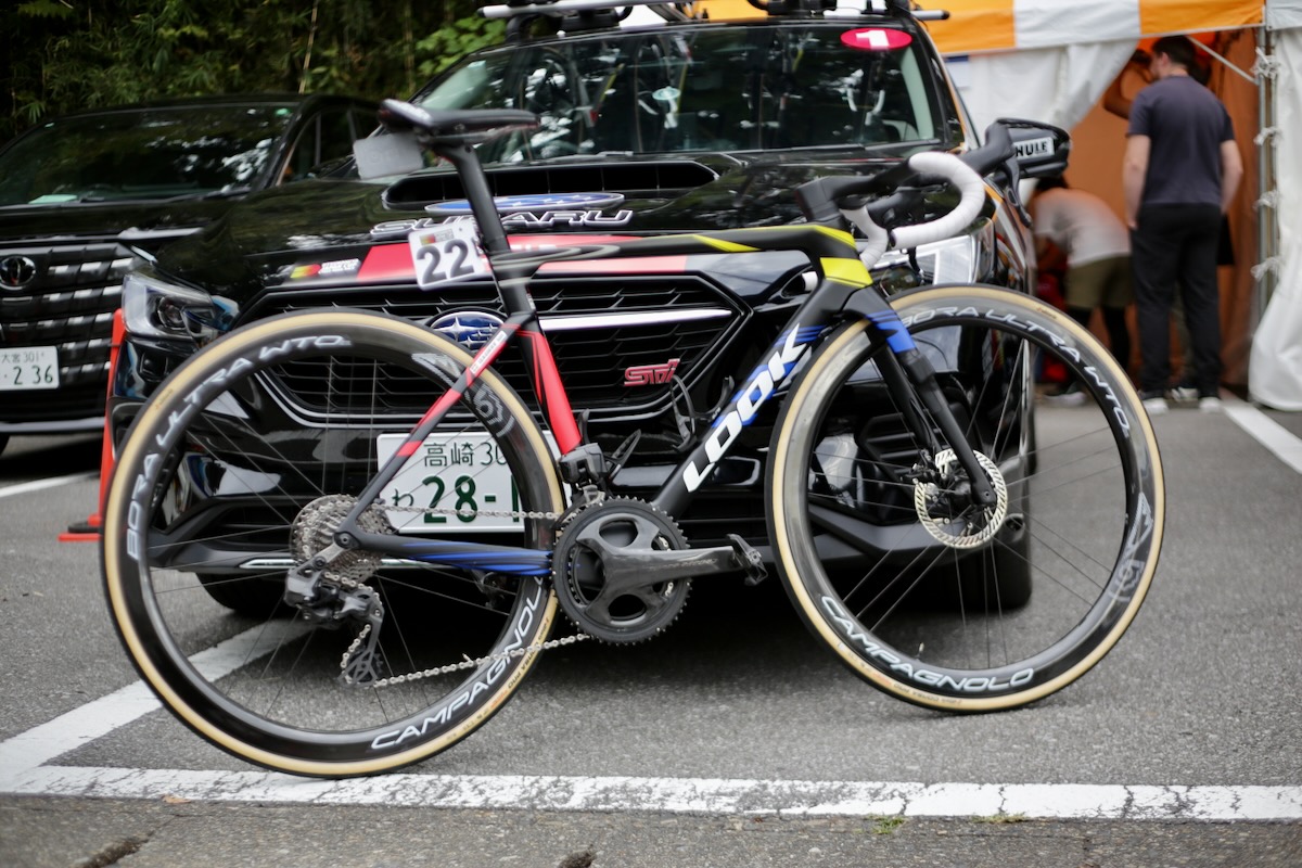 EF勢と同じく、シマノのDURA-ACEを基本としながらもFSAのクランクセット(POWERBOX K-FORCE/クランク長165mm)を組み合わせる。ホイールはOSTROと同時にデビューしたブラックインクの「48/58」。タイヤはコンチネンタルのGRAND PRIX 5000TT TR(28mm幅)。