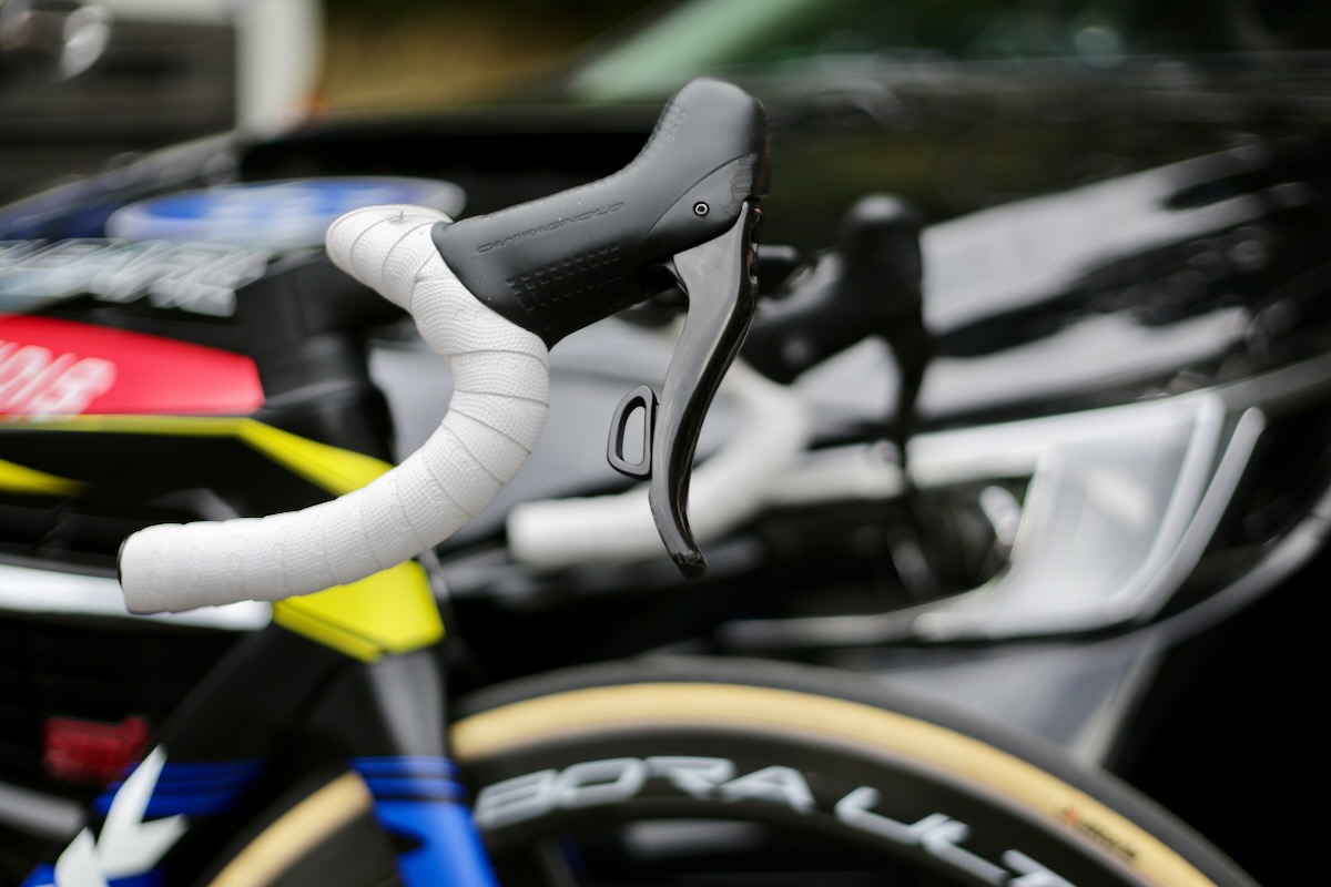 ブエルタ・ア・エスパーニャでステージ2回、ツール・ド・フランスでステージ1回の優勝経験を持つベテランは、慎重175cmで52サイズに乗る。ファクター傘下であるブラックインク製の一体型ハンドルのステム長は140mmで、幅は380mm(唯一140mmが存在するAB02ハンドル)。かなり内側に倒したSTIレバーが特徴的だ。