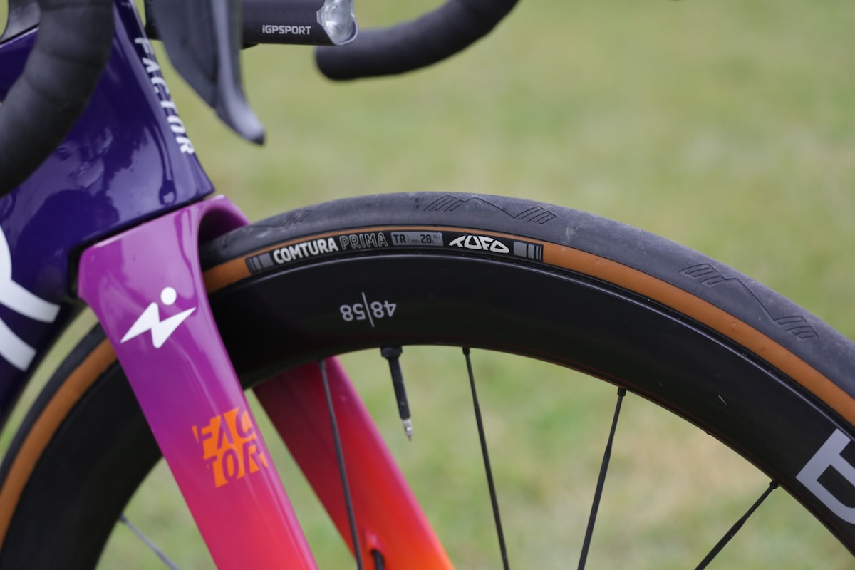 イチオシのTUFO製タイヤ「トラックのイメージが強いけど、実際とてもいいですね。真円度も高いし、グリップがとてもいい」 photo:So Isobe