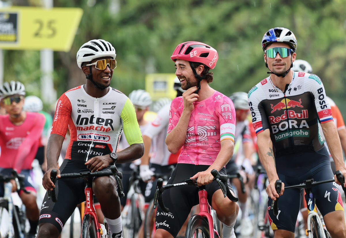 レース後半に入るとノヴァクが集団に捉えられ、中間スプリントではフィリプセンがミランやビニヤム・ギルマイ(エリトリア、アンテルマルシェ・ワンティ)を退けて先頭通過した。その後、ヒーリーやさいたまクリテリウム出場予定のプリモシュ・ログリッチ(スロベニア、レッドブル・ボーラ・ハンスグローエ)、ベン・オコーナー(オーストラリア、ジェイコ・アルウラー)などによる豪華な6名の逃げ集団が形成された。