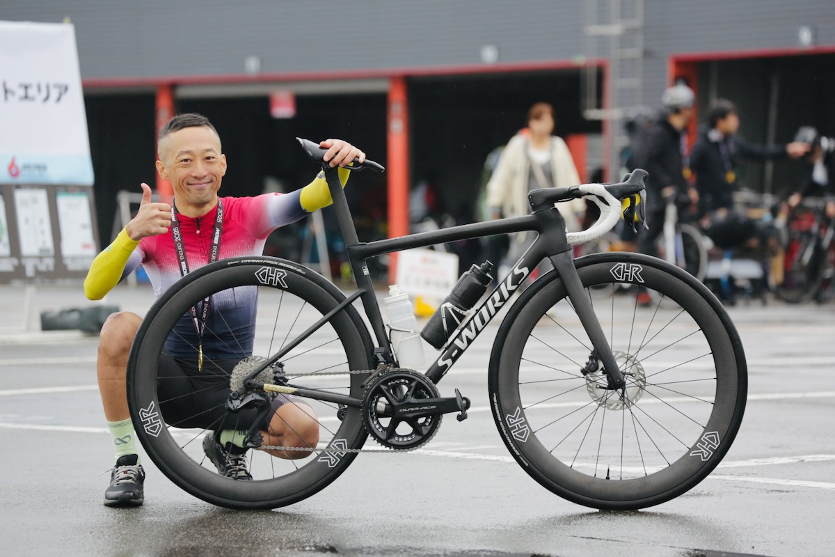 工藤政幸さん(4時間エンデューロ ロードソロ1位)とスペシャライズド S-WORKS Tarmac SL8 photo:So Isobe
