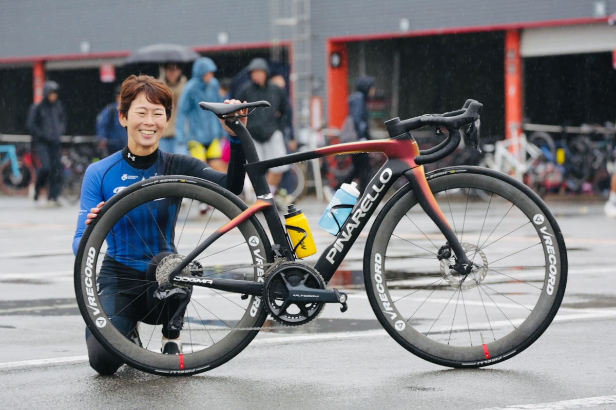 廣瀬博子さん(4時間エンデューロ ロードウーマンソロ1位)とピナレロ DOGMA F photo:So Isobe