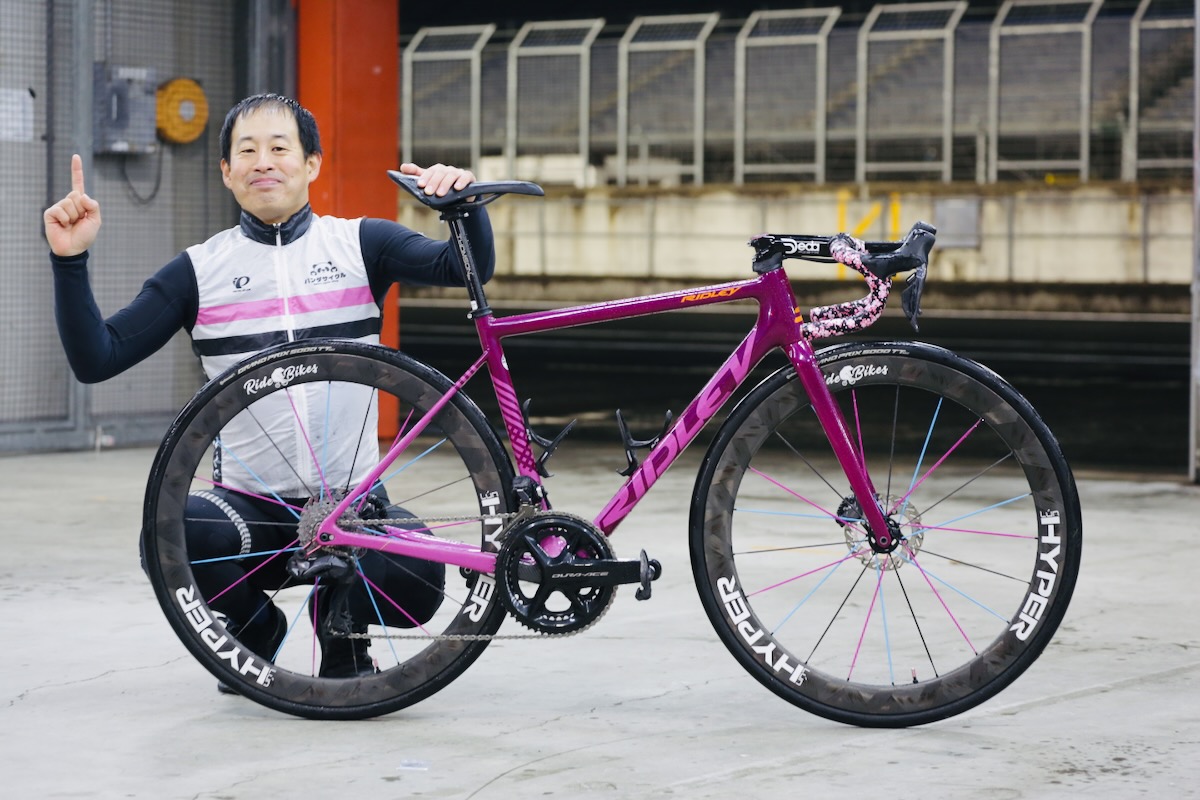 半田信頼さん(2時間エンデューロ ロードソロ1位)とリドレー Helium SLX photo:So Isobe