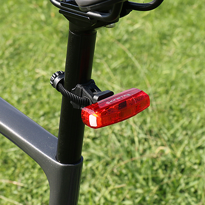リアライトのNETWORK KINETIC AUTOは、減速検知によるキネティック機能が魅力のモデル。自転車の減速を感知すると約2.5秒間、通常のハイモードの2倍の明るさで点灯し、後方に存在をアピールする。バッテリー容量は500mAhで、点灯ハイモードで約3.5時間、ローモードで約10時間、点滅で約70時間の使用が可能だ。ブレーキモードの作動時の点灯時間の目安はWEBに記載されているため、気になる方はチェックをしておこう。