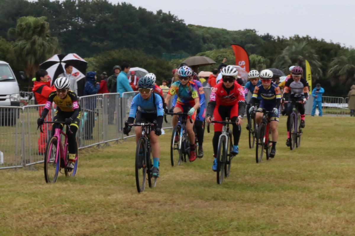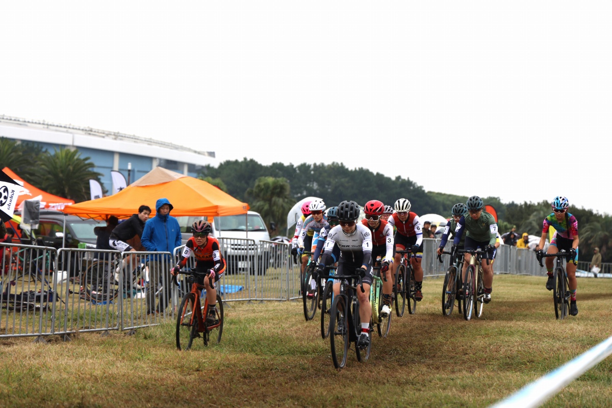 女子エリート(WE1)のフロントローに揃ったのはJCX2連勝中の石田唯(TRKWorks)と開幕戦を制した竹村舞葉(SHIDO-WORKS)、椿井和佳奈(OLIVE)といったメンバー。このレースもジュニアカテゴリーとの同時出走となり、日吉彩華(Asia Union TCS Racing Team)は2列目に並びスタートの時を待った。