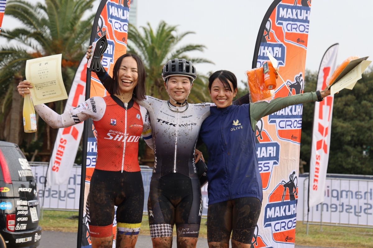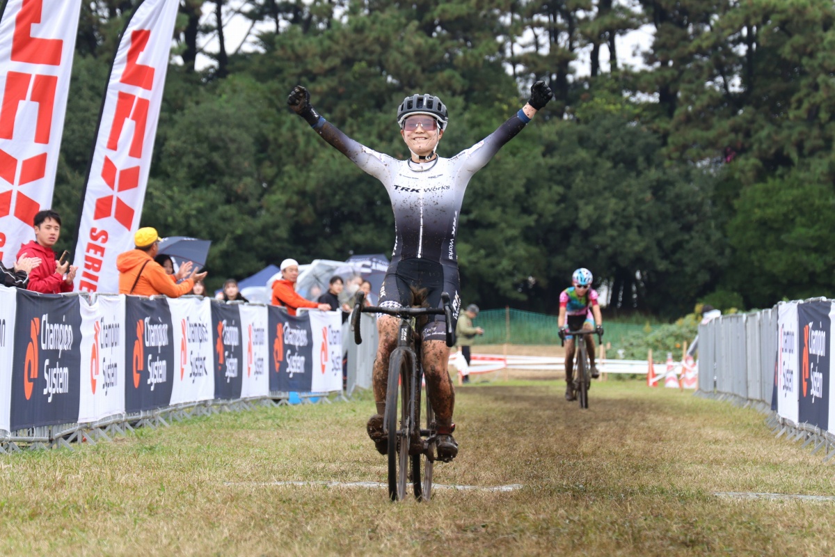 女子エリートの意地を見せた石田は最終コーナーを先頭で立ち上がり、そのままガッツポーズをしながらJCX第4戦を制し、3連勝。2番目にフィニッシュラインを越えたのは女子ジュニアの日吉で、エリートとの混走にもかかわらず堂々の走りを見せた。エリートの2位は先頭を追い続けた竹村、3位は粘りの走りを見せた椿井が表彰台に上がっている。