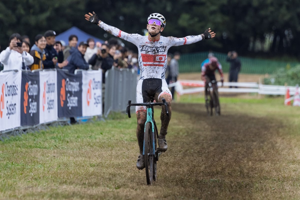 「最終周回まで先頭争いをして、ほとんど沢田選手が前にいる状況だったので、今回も負けてしまうのかなと思った時もありました。だけどお互いの得意不得意がある中で、前に出ることができました。お互い身体が当たり合いながらの激しいレースでしたが、優勝できて良かったです。今シーズンも松伏シクロクロスと全日本選手権で優勝することが目標なので、他のUCIレースでも頑張っていきたいです」と織田はレースを振り返り、笑顔で今後の目標を語った。
